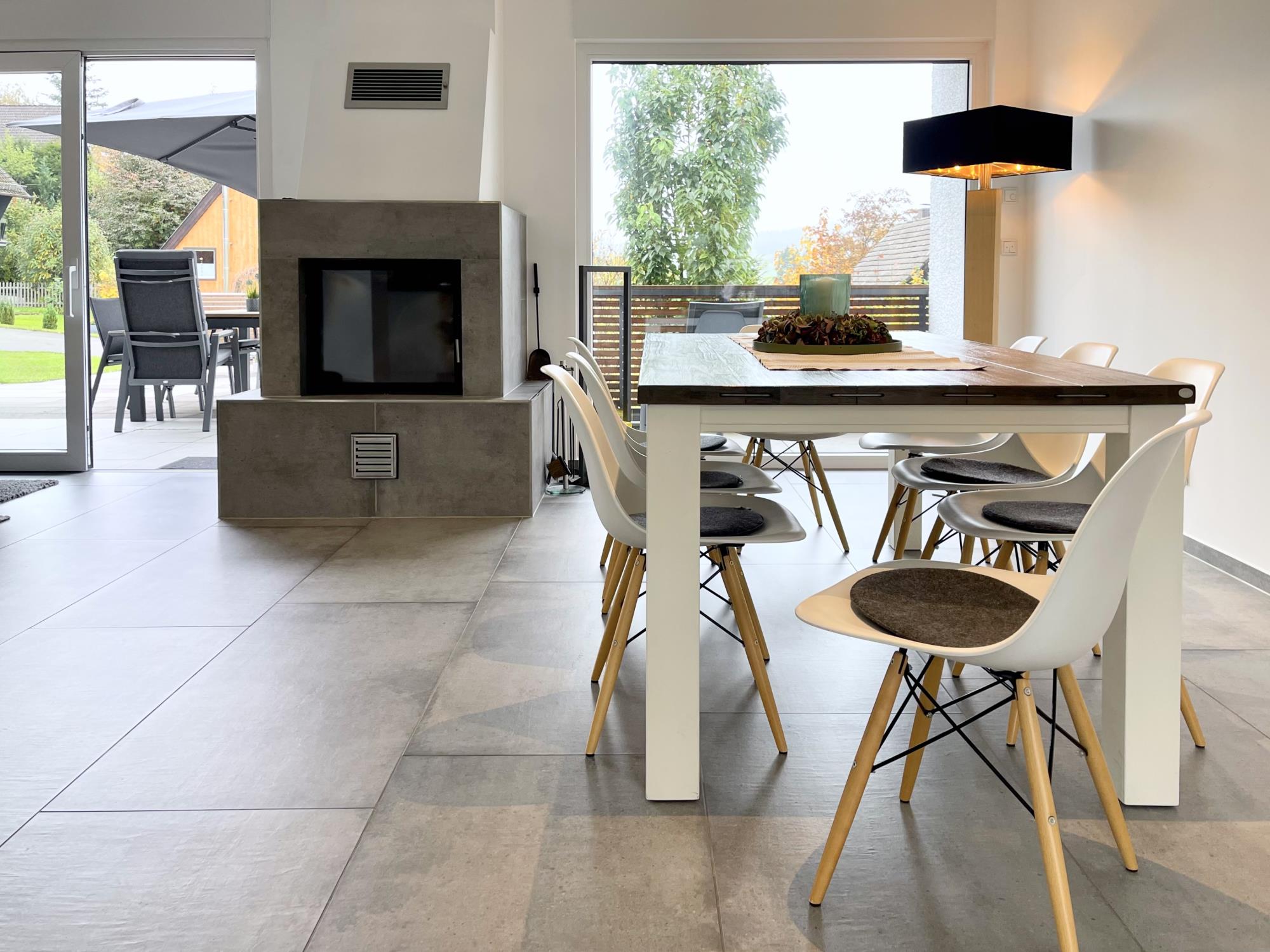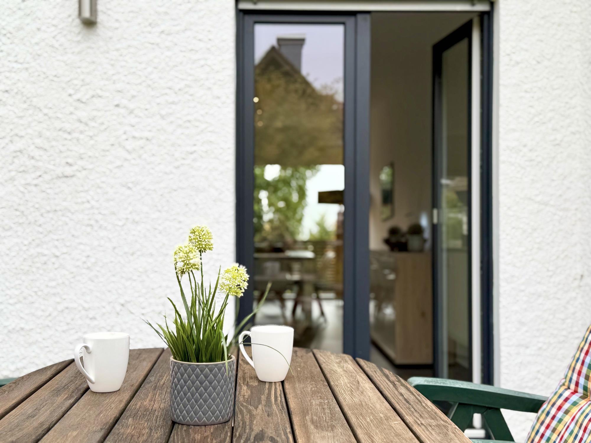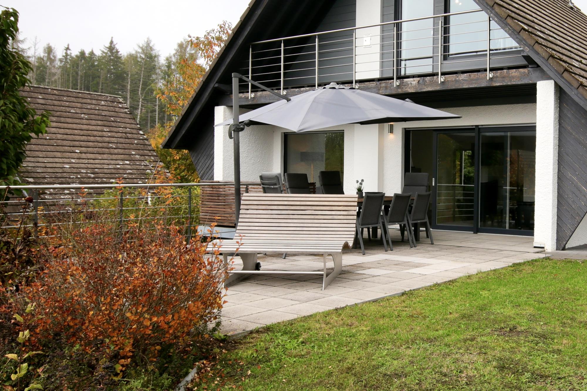 Das Ferienhaus selber verfügt über einen schönen Terrassenbereich mit gemütlichen Sitzmöglichkeiten, die zum Beisammensein und Entspannen einladen.