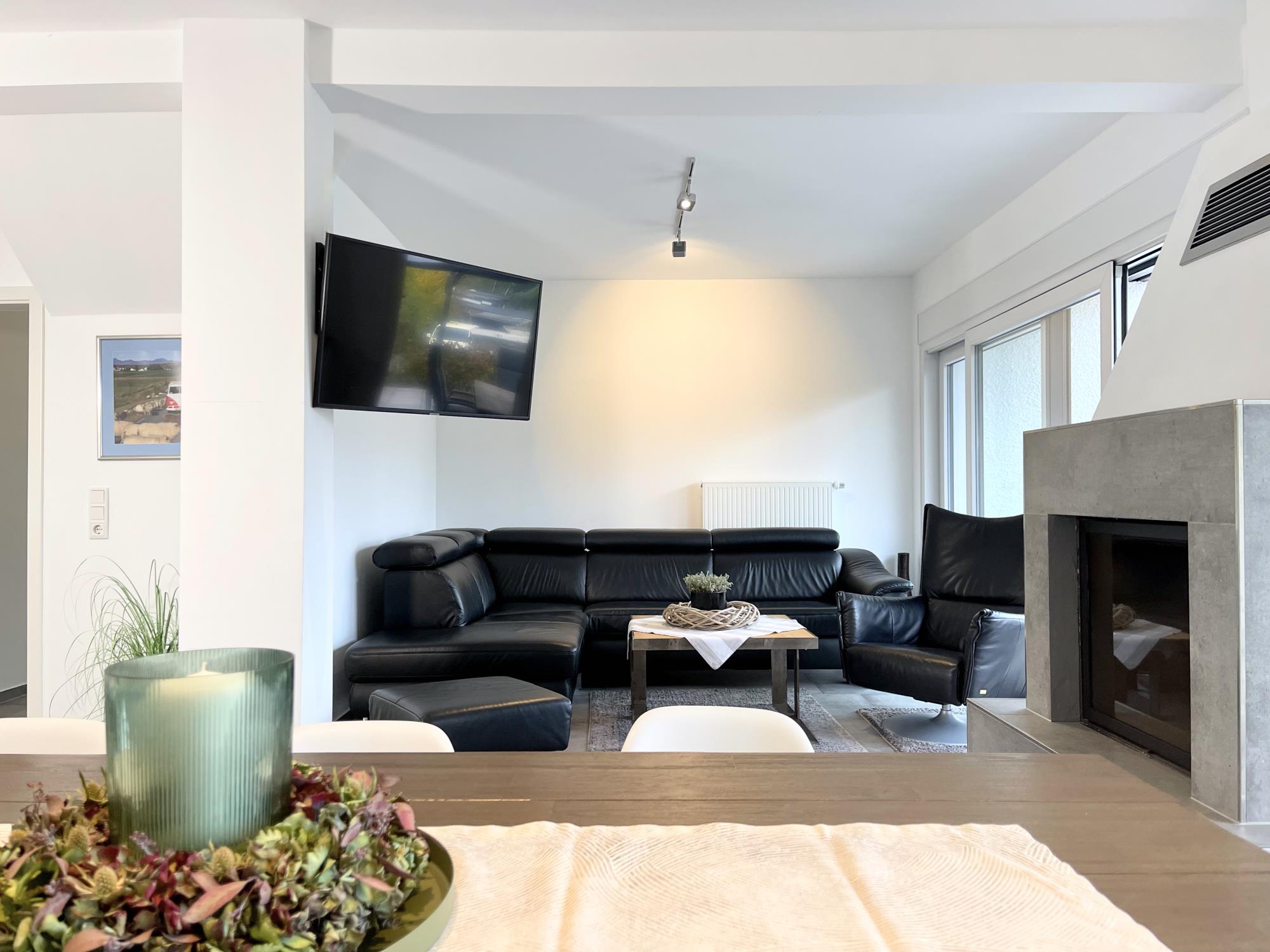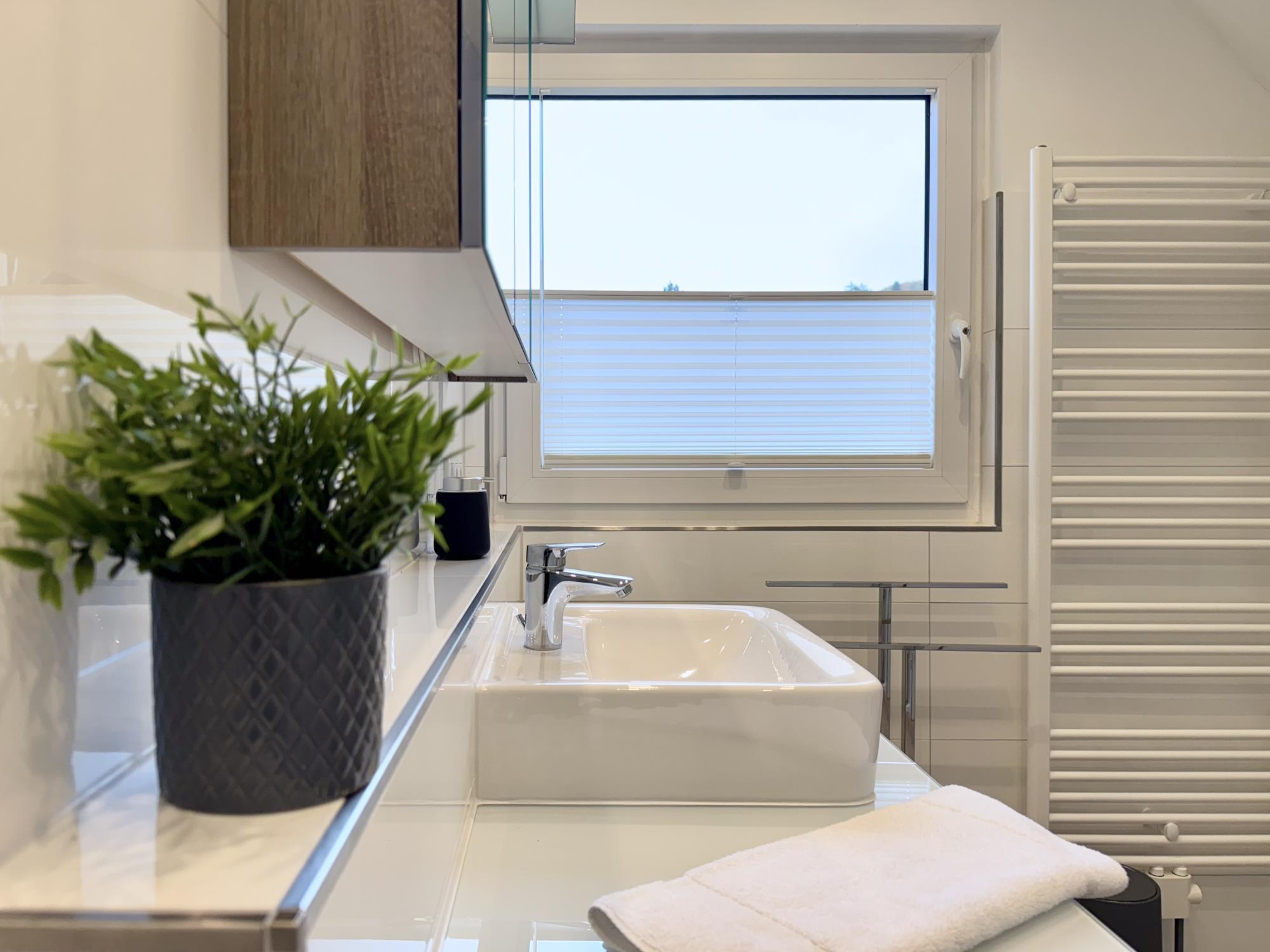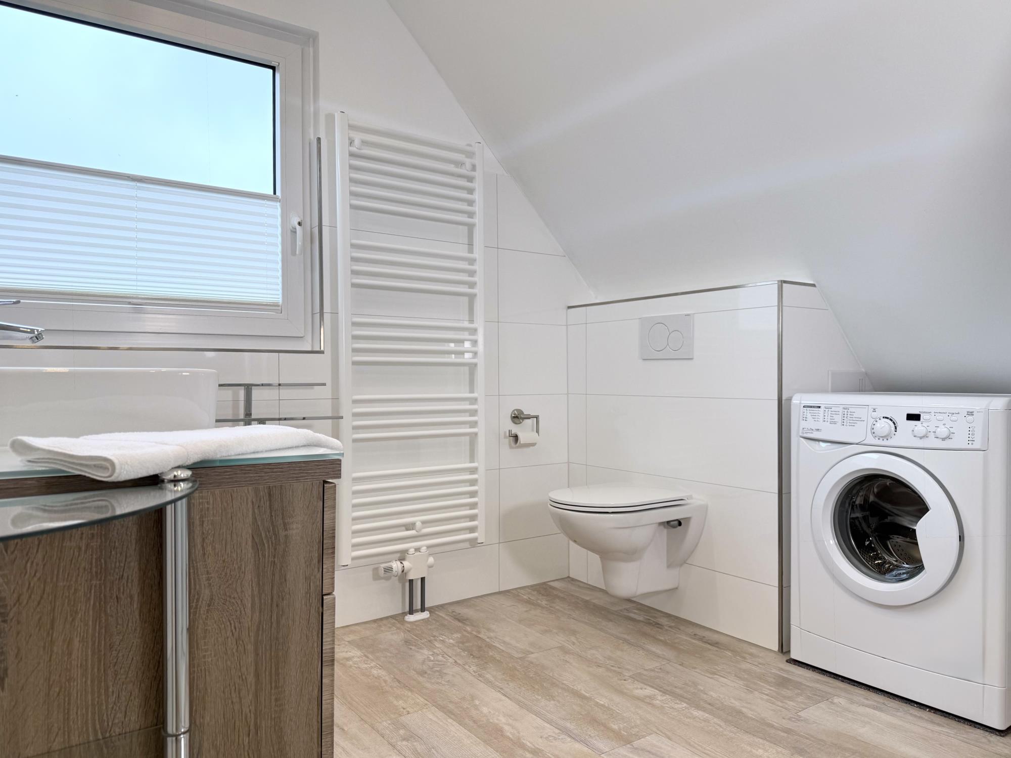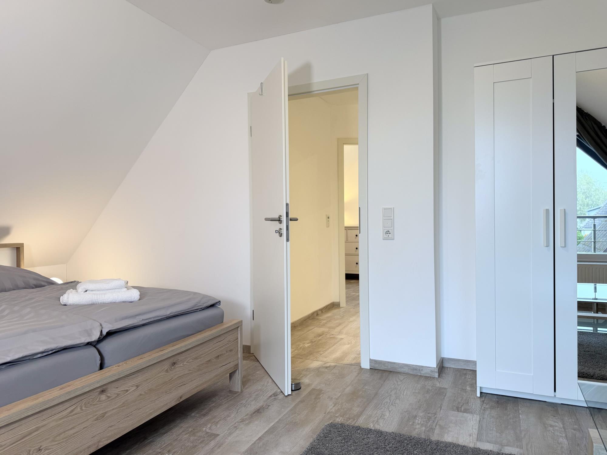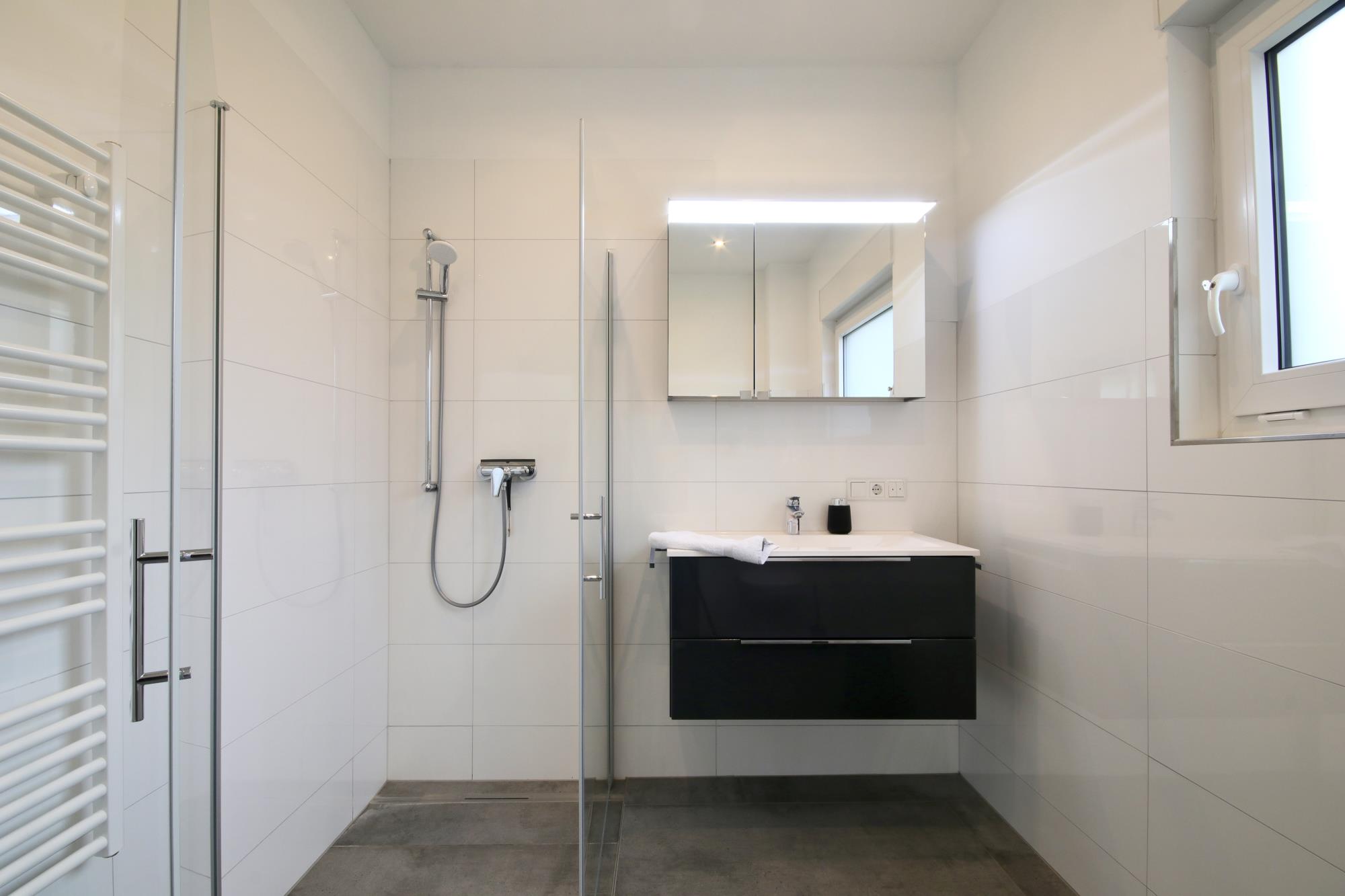Zudem gibt es 2 Schlafzimmer mit jeweils einem Doppelbett (180cm x 200 cm & 160cm x 200 cm) und ein modernes Bad im Obergeschoss, sowie im Untergeschoss.
