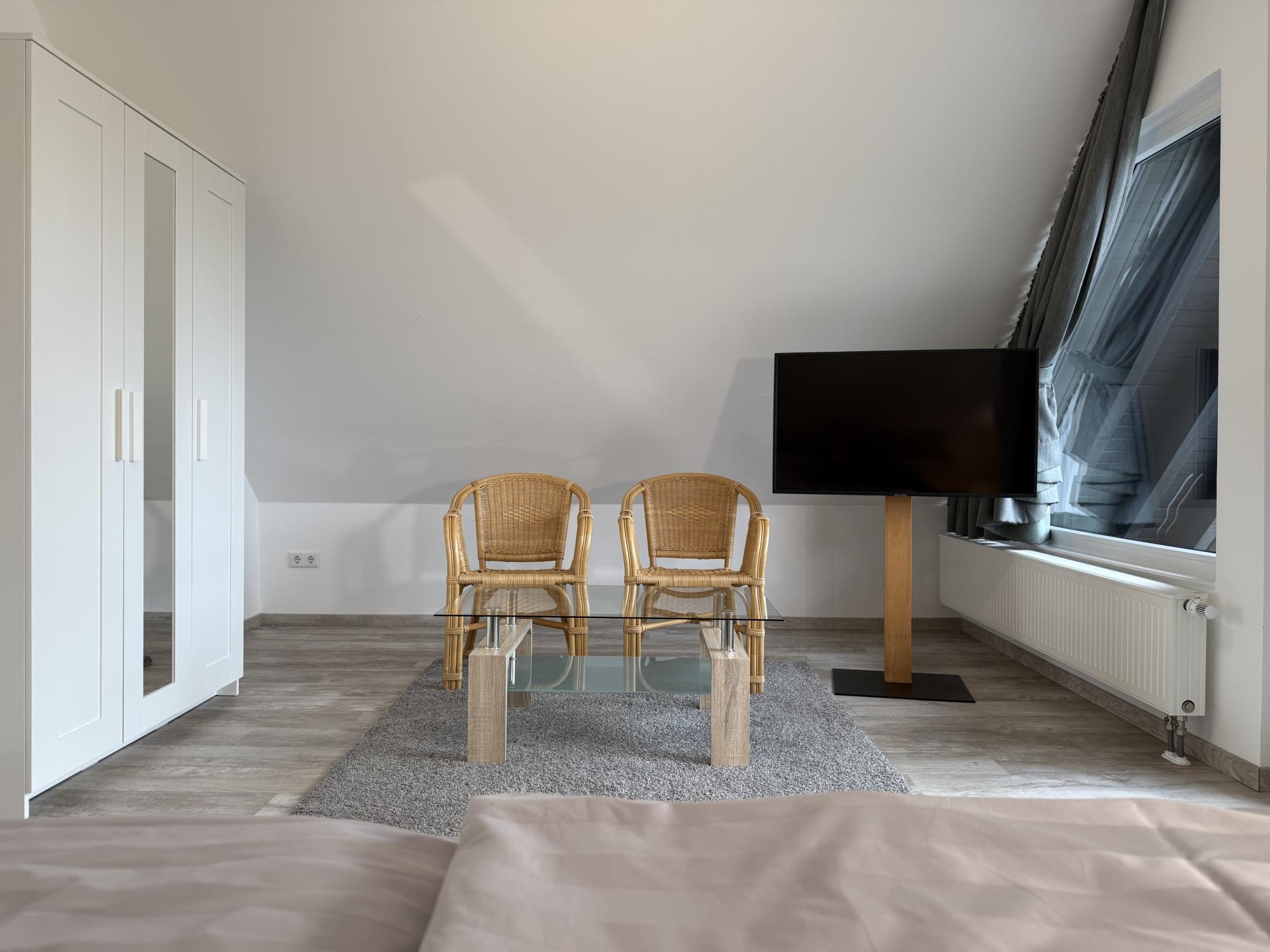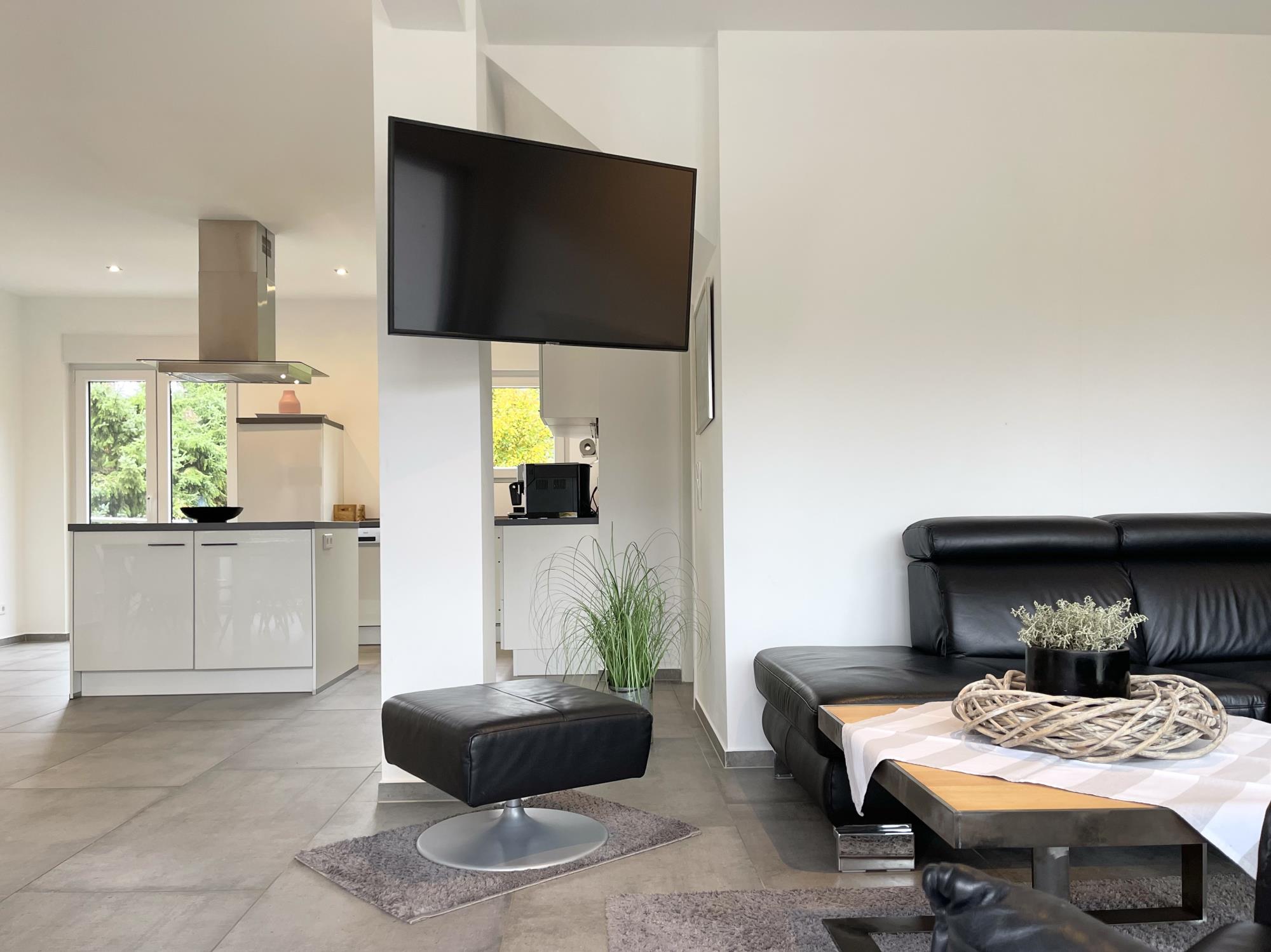 Der gemütliche Wohn- und Schlafraum ist mit Ausziehcouch und angrenzender, offener Küche (Spülmaschine vorhanden) ausgestattet.
