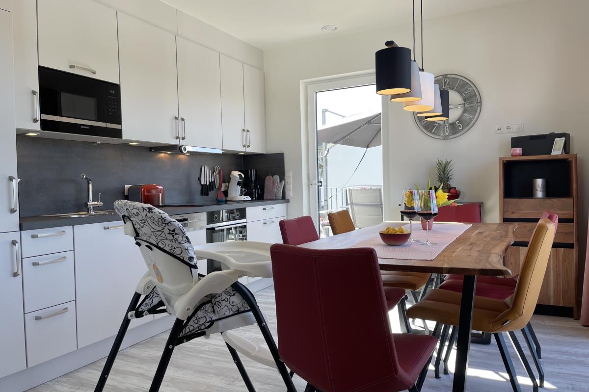 Auf der oberen Ebene befindet sich der großzügige Wohn-/Essbereich inkl. top-ausgestatteter Küche. Durch die bodentiefen Fenster bietet sich hier ein herrlicher Ausblick auf die Ausläufer des Mittelgebirges und den Diemelsee - LakeView pur, da wird der Name zum Programm!
