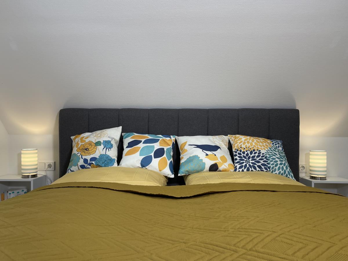 Eine Treppe hinauf gibt’s drei Schlafzimmer mit wunderbaren Boxspringbetten (180x200cm), reichlich Schrankflächen für die Urlaubsgarderobe und Smart-TV.