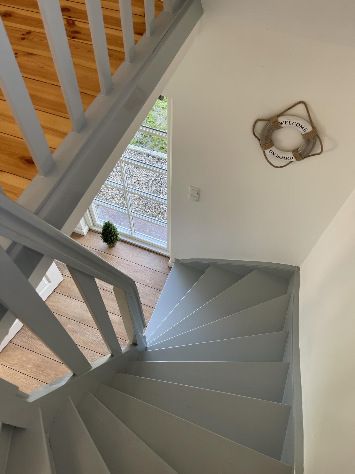 Eine Treppe hinauf findet ihr ein weiteres Schlafgemach und ein separates Bad mit Dusche. Das Sofa im Wohnbereich bietet zwei weitere Schlafplätze.