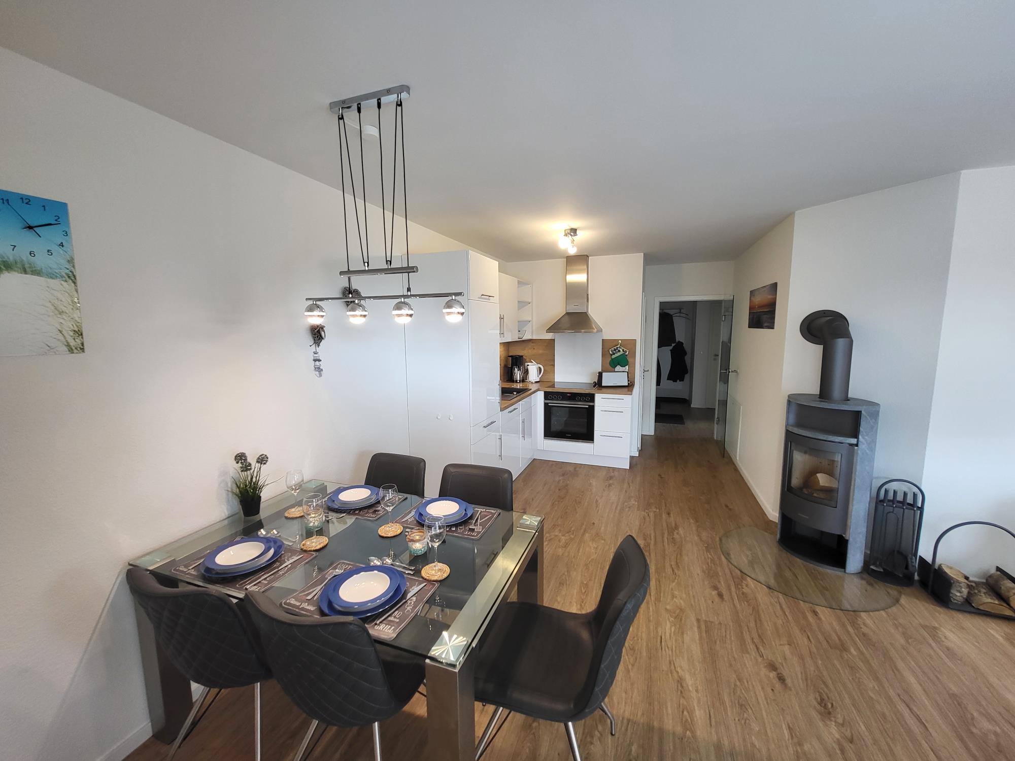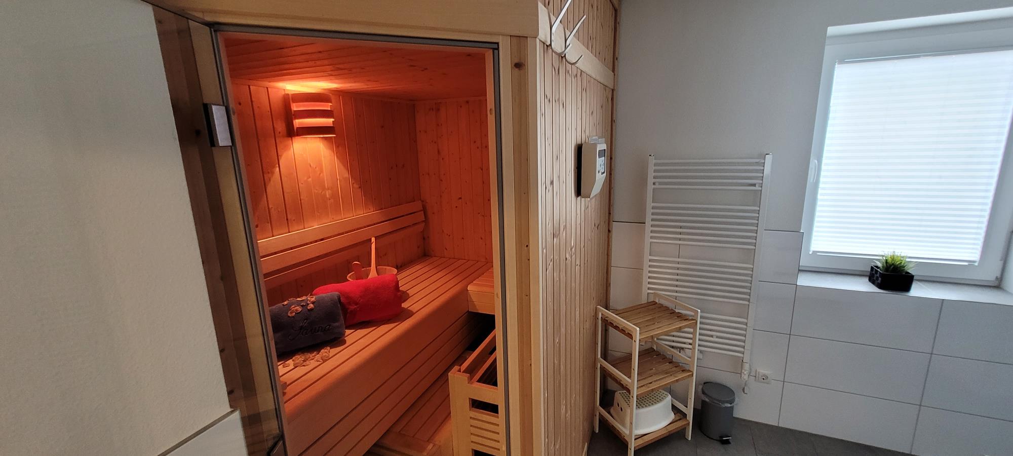 Zu den Highlights der Wohnung gehören die eigene Sauna für entspannte Wellnessmomente und ein gemütlicher Kaminofen, für den wir Ihnen kostenfreies Feuerholz bereitstellen.