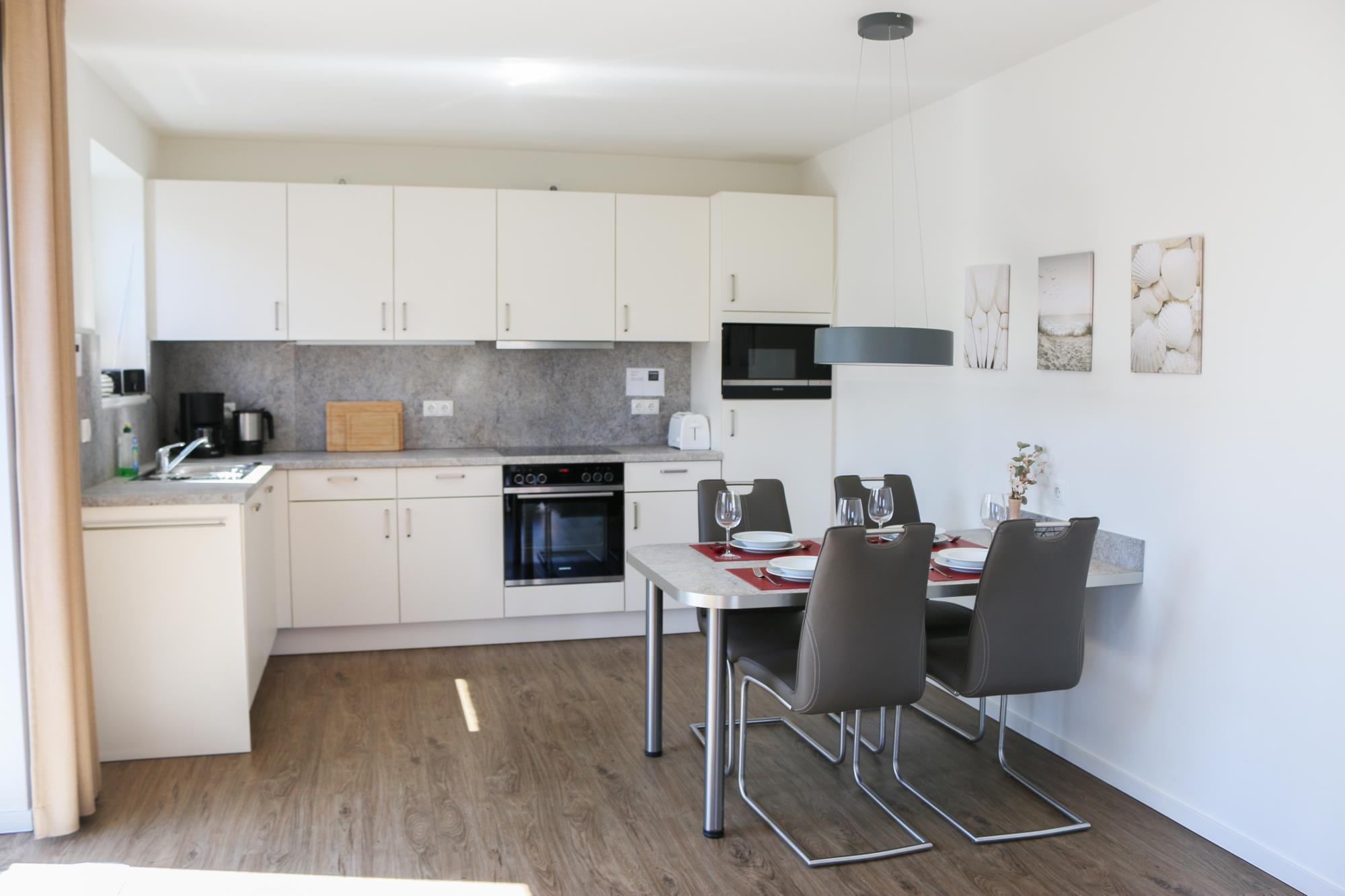 Die Fewo ließ keine Wünsche offen! Neben der qualitätvollen, hochwertigen Einrichtung und Ausstattung in der Wohnung noch der Nebenraum mit Waschmaschine, Wäschegestell, Bügeleisen, -brett, Staubsauger, Besen etc.! Ein großes Lob auch an die Objektbetreuerin - sie macht einen guten Job. Für den Bollerwagen im Abteil für die Unterbringung der Fahrräder ist allerdings kein Platz mehr, es ist schon eng für zwei Räder. Ein Urlaub in diesen Häusern ist ohne Einschränkung zu empfehlen! Vielen Dank!