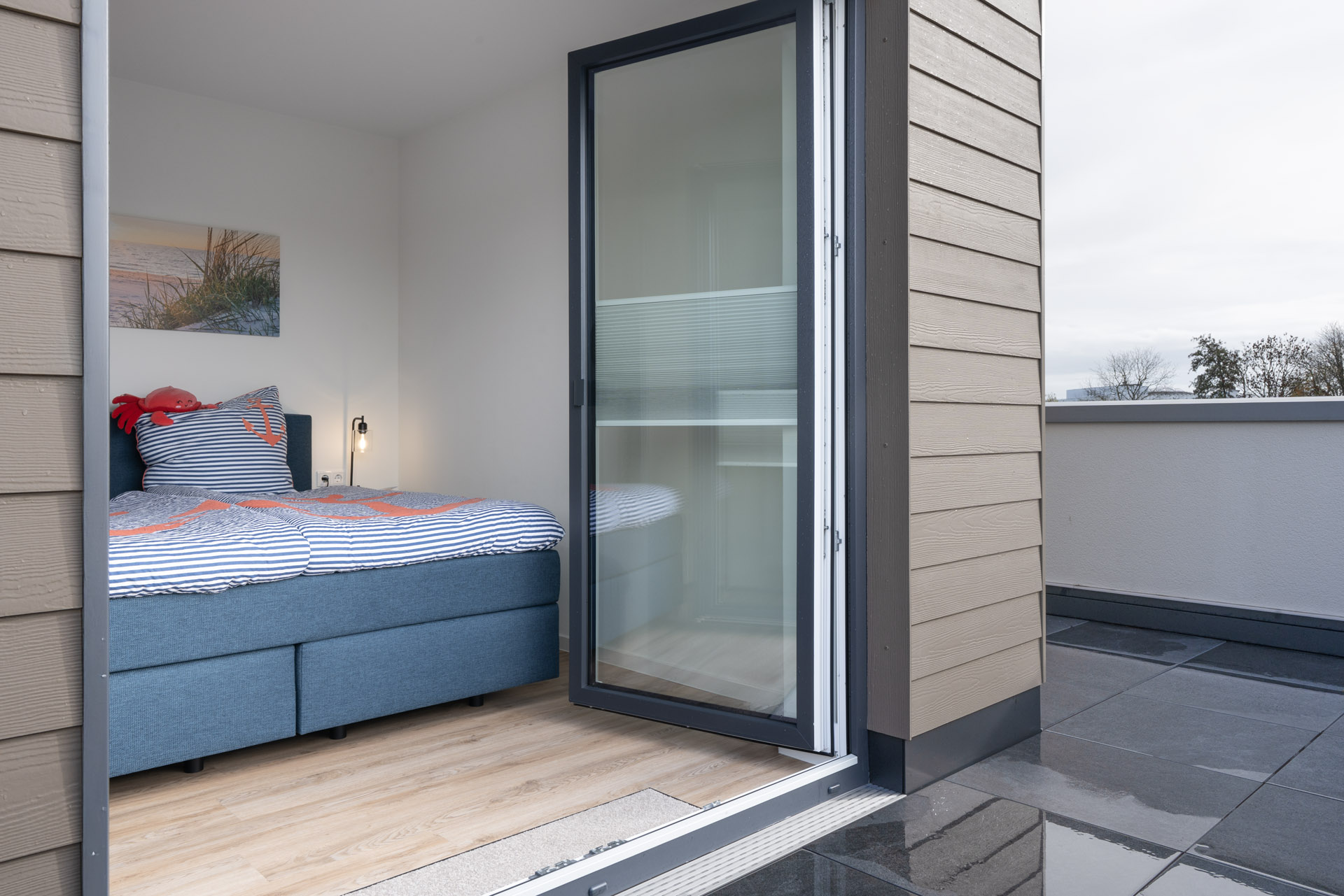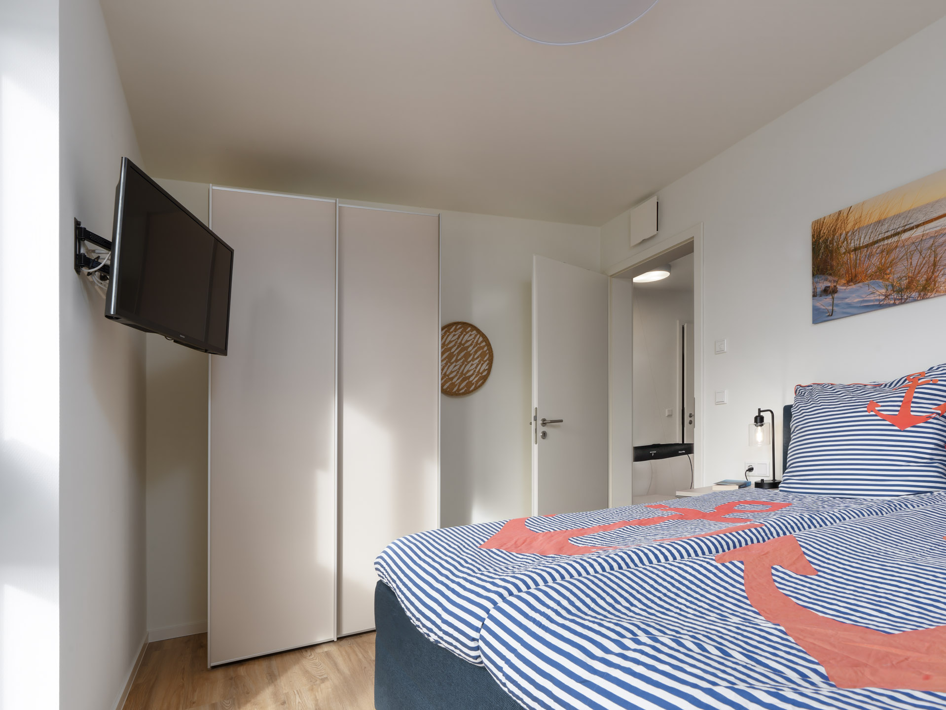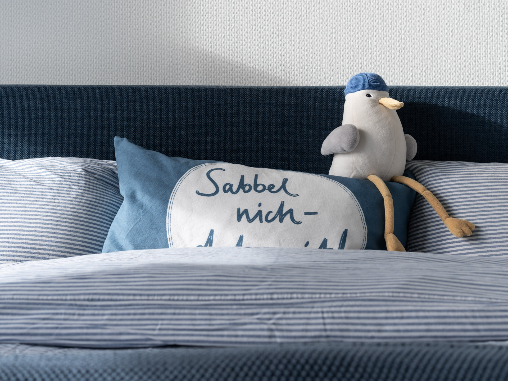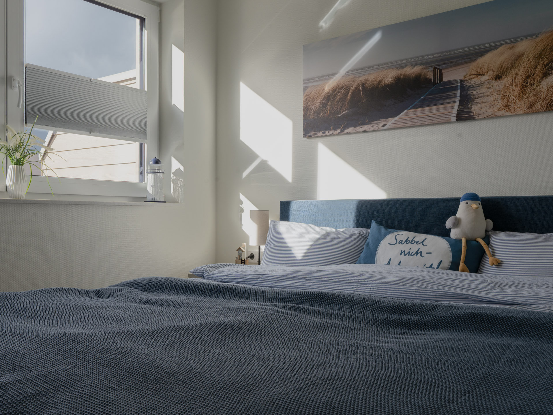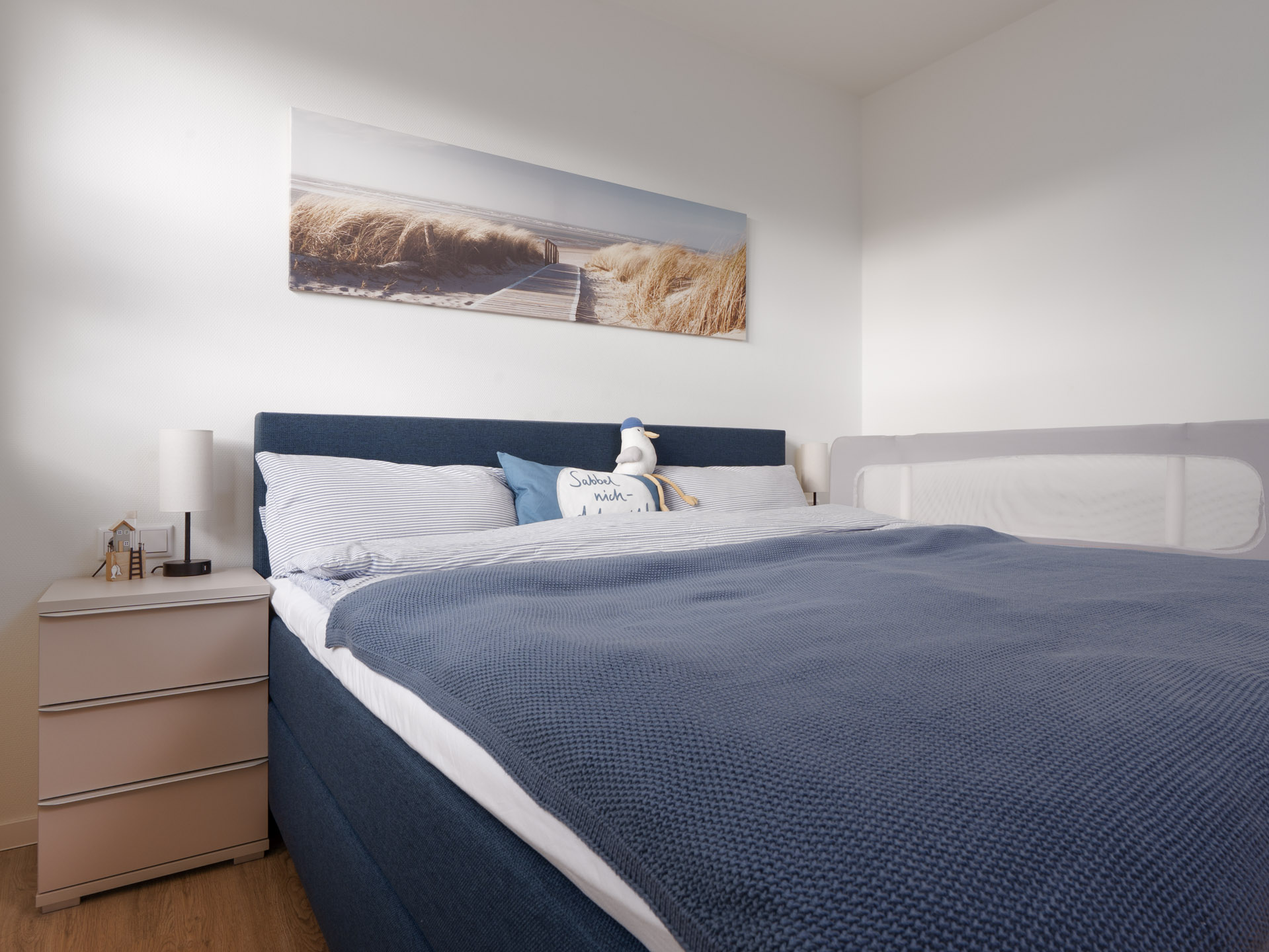 In den beiden Schlafzimmern findet Ihr Boxspringbetten 180x200cm mit durchgängigen Toppern. Für die kleinen Gäste wurde sogar an einen Rausfallschutz gedacht.