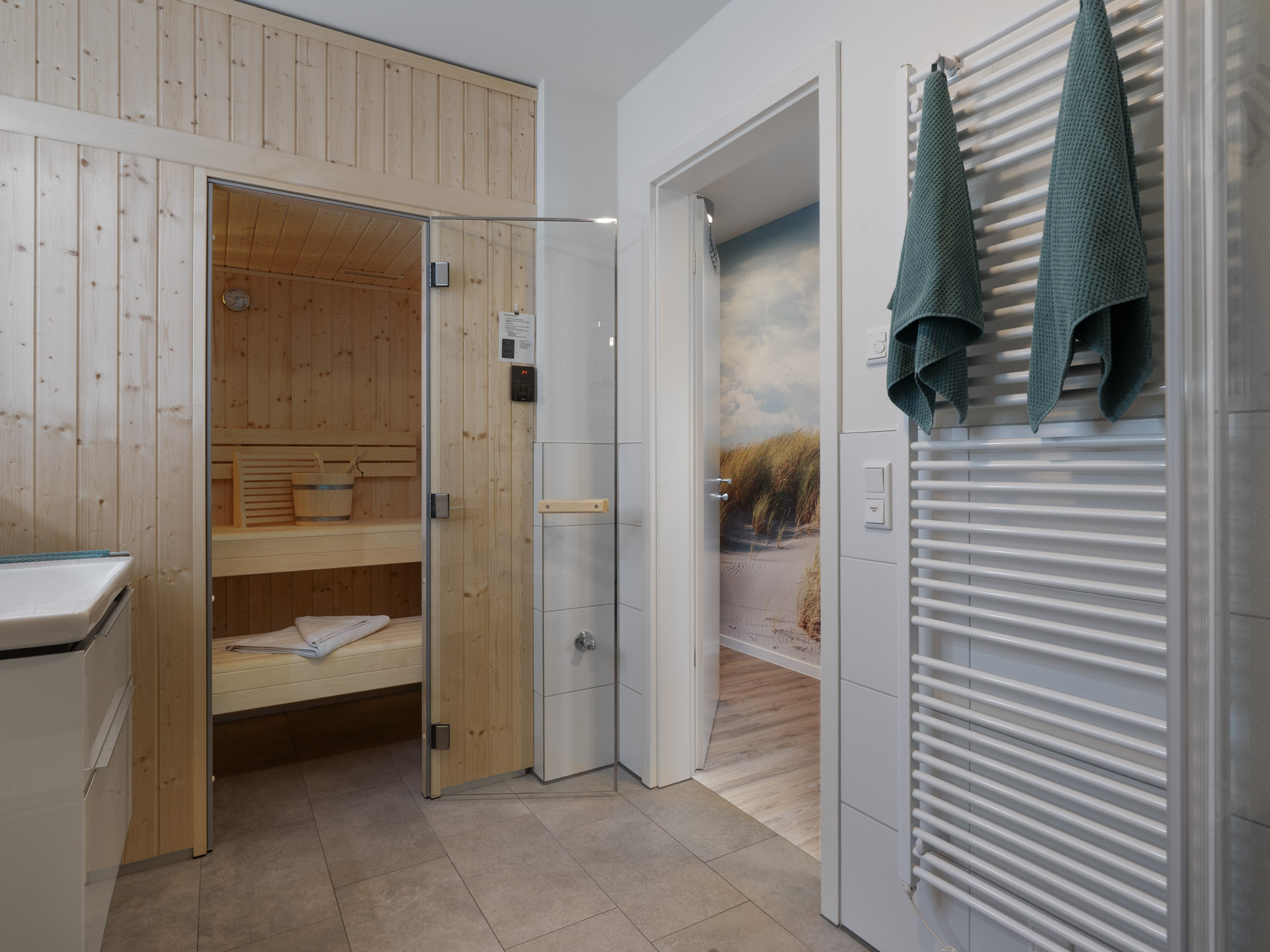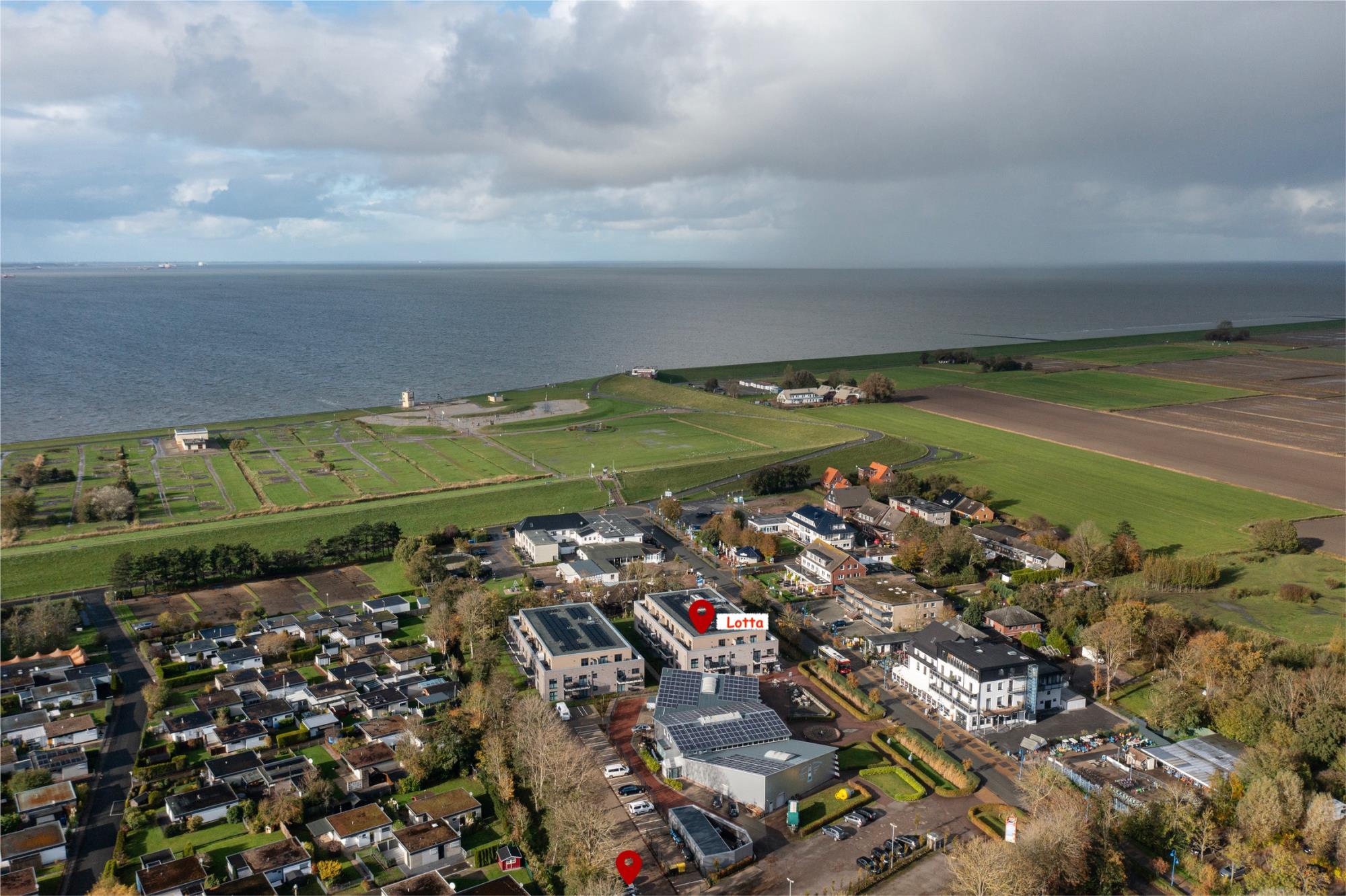 Die Penthouse-Ferienwohnung LOTTA an der Nordsee, mit eigener Sauna, ist mittendrin in Tossens. Von hier aus sind es nur wenige Schritte zum Friesenstrand. Hier steht während der Sommersaison (ca. Mai bis Mitte/Ende September) ein Strandkorb bereit.