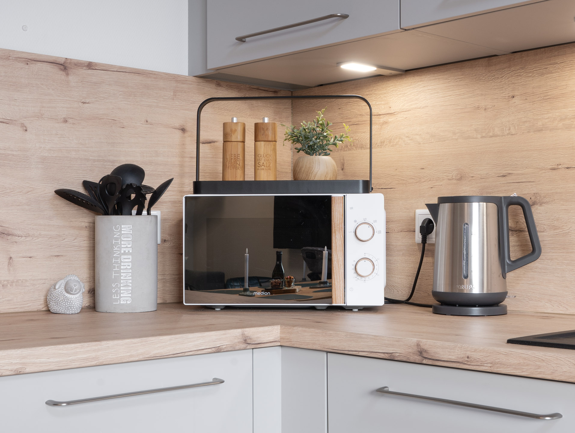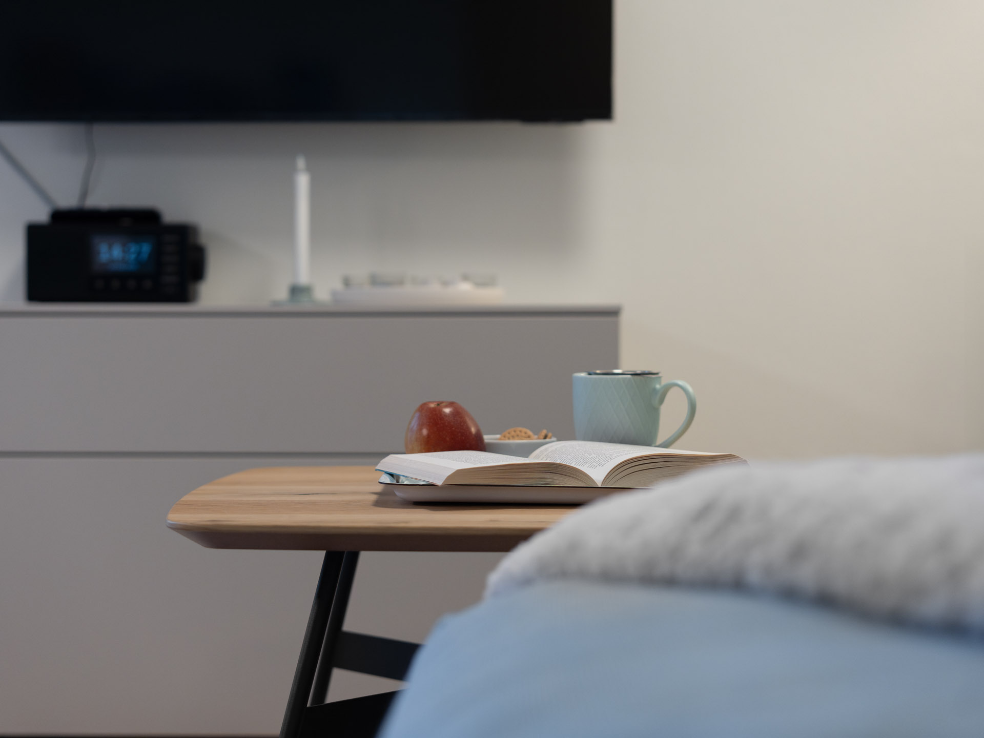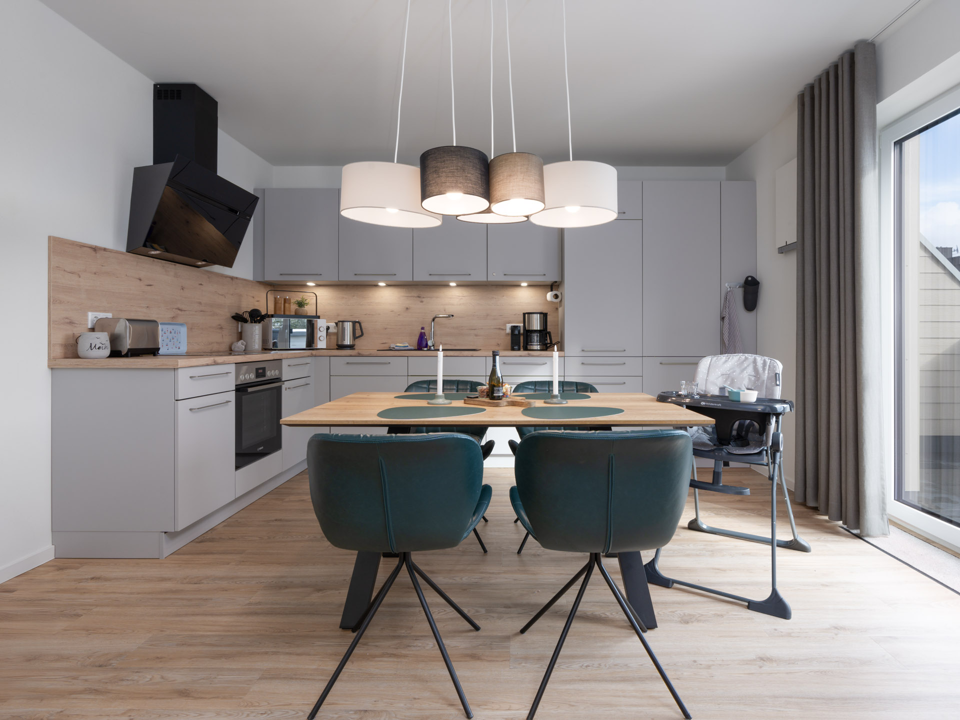 Die Fewo LOTTA begeistert uns mit einem nordisch-frischen Einrichtungskonzept. Von A, wie Milchaufschäumer bis Z, wie Kinderbesteck findet ihr hier sogar einen Ventilator, einen Bollerwagen und einen abschließbaren Fahrradraum, in dem ihr auch euer E-Bike laden könnt. Ein Kfz-Stellplatz ist bei Anmietung der Ferienwohnung LOTTA in Tossens grundsätzlich inklusive.